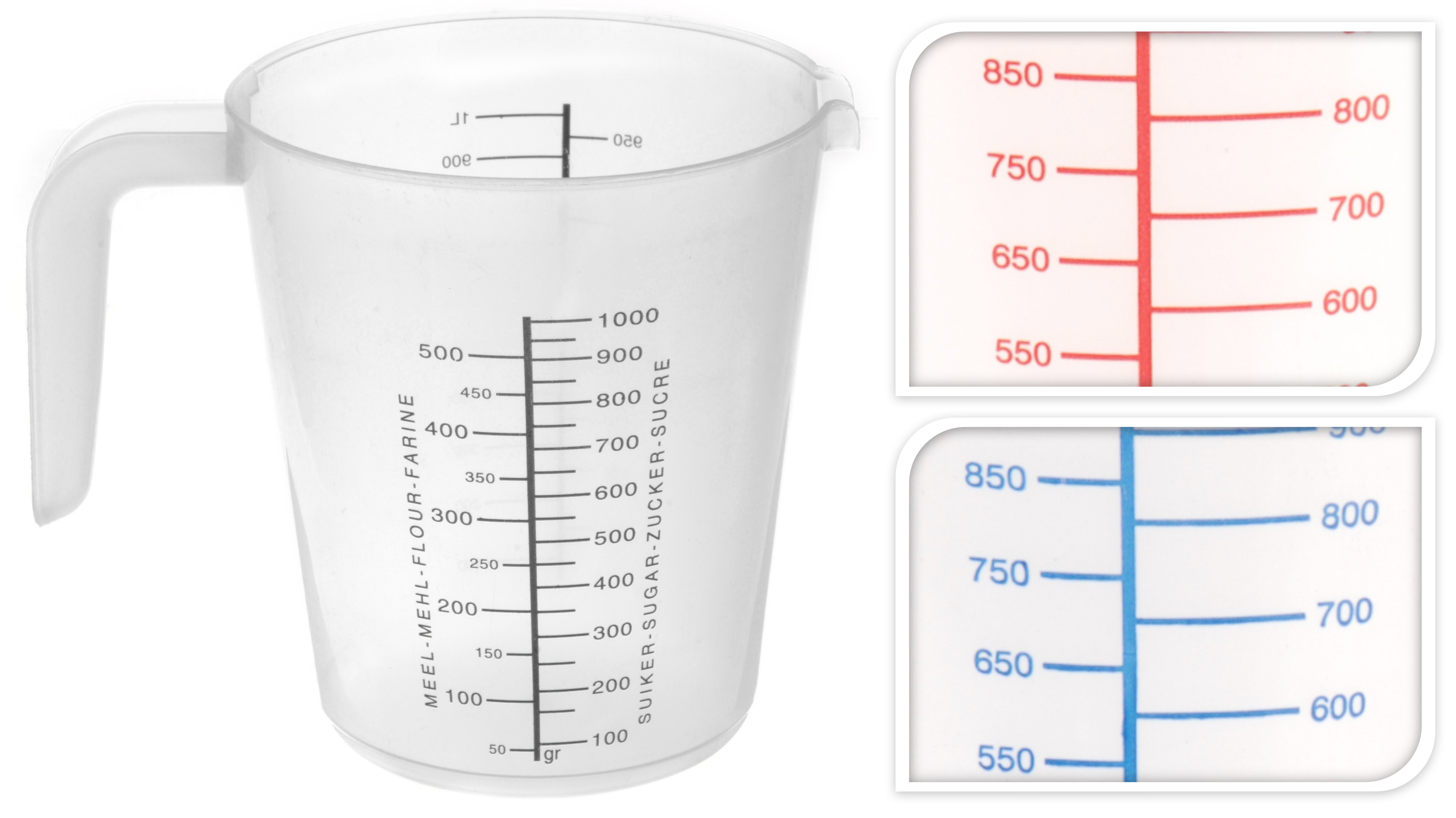 Measuring Jug 1 liter Plastic. Comes in three colors.