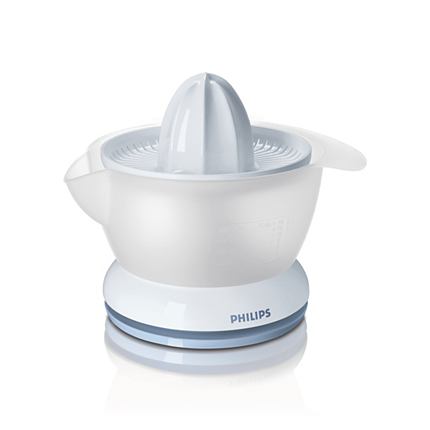 The Philips Citrus Juicer HR2738/00 combines a compact design with easy operation. With a 0.4-liter capacity and a white plastic housing, this appliance is perfect for daily juicing of oranges, lemons, or limes. The transparent juice container makes it easy to monitor the amount of juice. Thanks to the integrated spout, juice can be poured directly without spilling. The juicing cone is designed for both small and larger citrus fruits, ensuring optimal extraction. The appliance features a dust cover and detachable, dishwasher-safe parts for quick and easy cleaning. With its lightweight and compact size, this citrus juicer takes up minimal space on the countertop or in the cupboard. Ideal for households, student accommodations, and short-stay residences where convenience and ease of use are important.