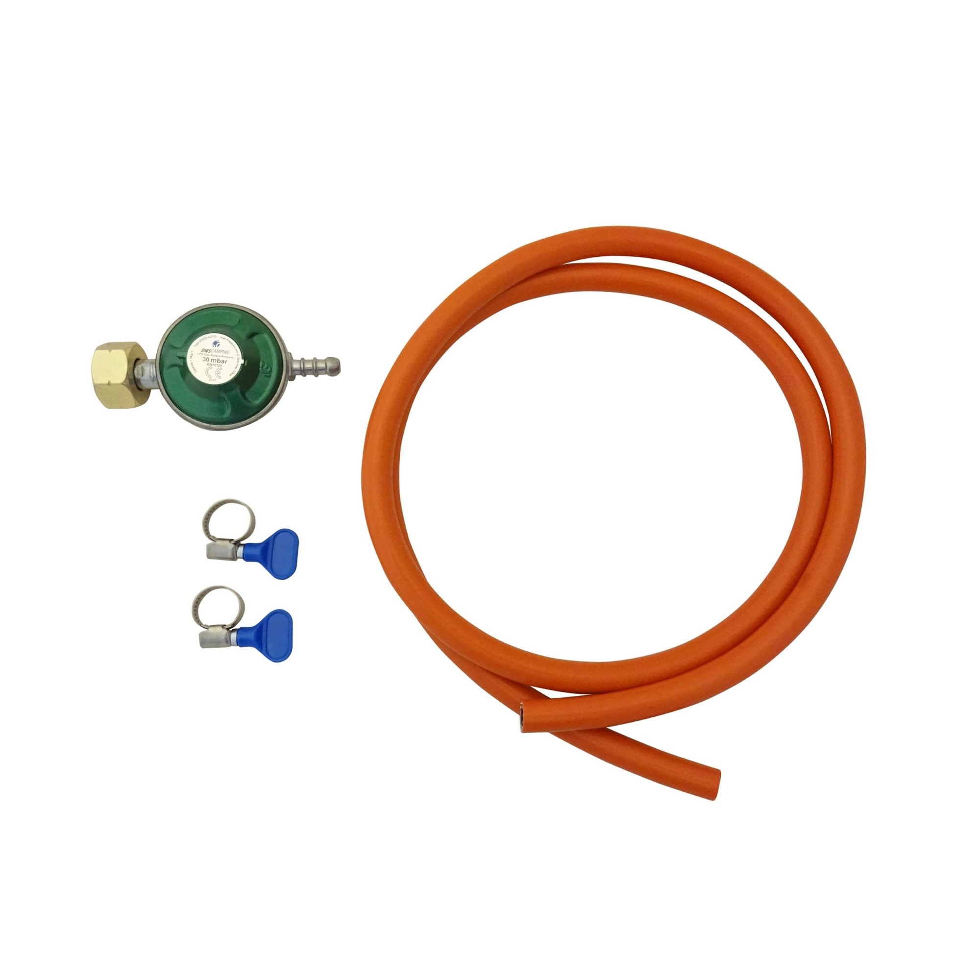 The universal 30 mbar gas regulator with hose is a safe and reliable solution for gas bottle use. Suitable for various cooking and heating appliances in temporary housing.