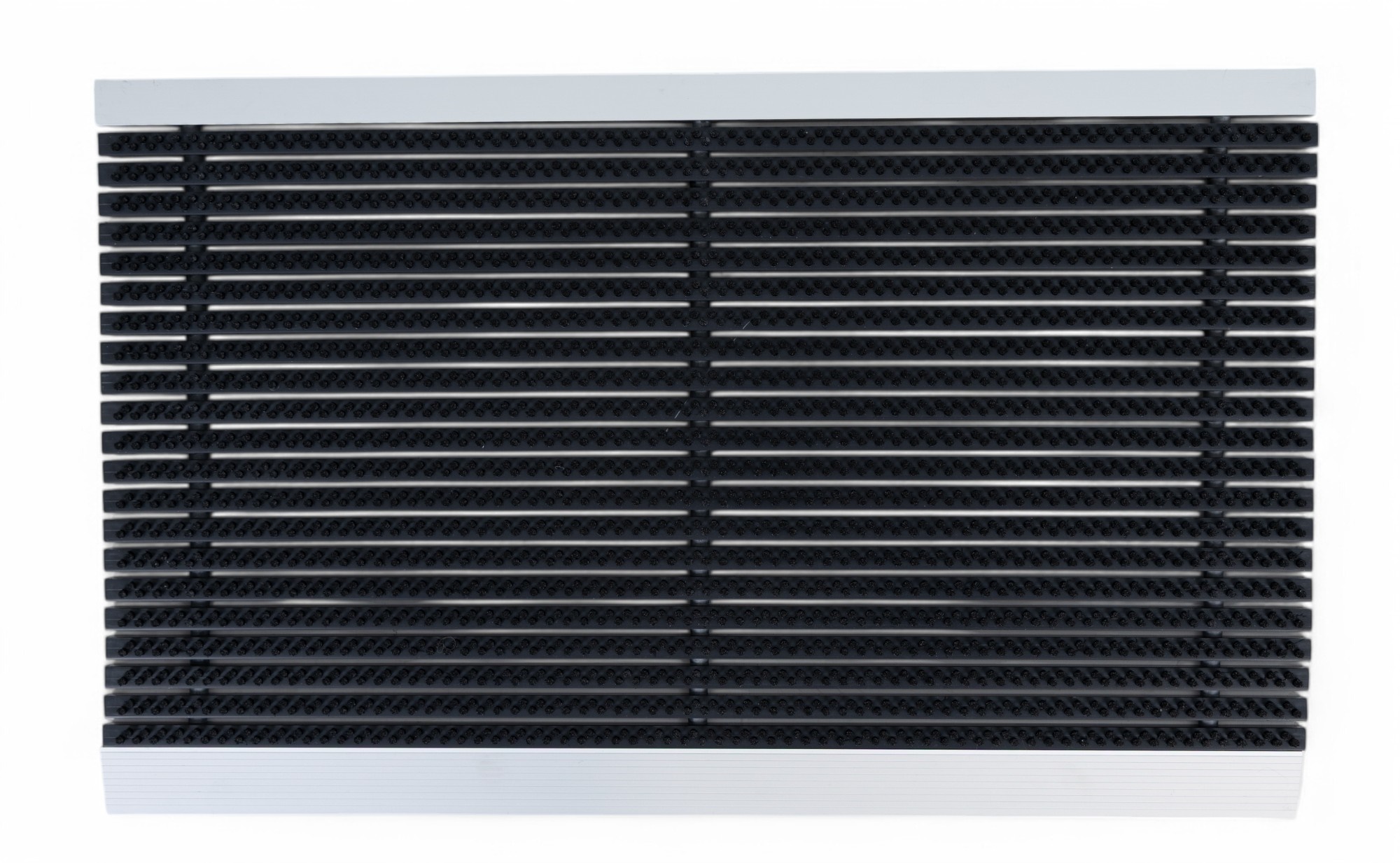 The Outline 60 x 90 cm aluminum edge entrance mat is a durable entrance mat that keeps dirt and moisture out. The mat has a rectangular shape and is finished in a neutral gray, suitable for a variety of interiors. Thanks to its sturdy brush surface, it thoroughly cleans shoes, keeping interior spaces cleaner. The mat consists of stiff brush fibers attached to a robust aluminum frame. This frame ensures stability and prevents curling or shifting, even with heavy use. The open structure allows dirt to easily pass through, simplifying maintenance. The mat is easy to clean by shaking or rinsing. This brush mat is ideal for entrances to temporary housing, offices, or short-stay accommodations where there is a high volume of traffic daily. Thanks to its 60 x 90 cm size, the mat offers sufficient surface area for effective cleaning without taking up much space. A practical and durable choice for locations where cleanliness and ease of use are important.