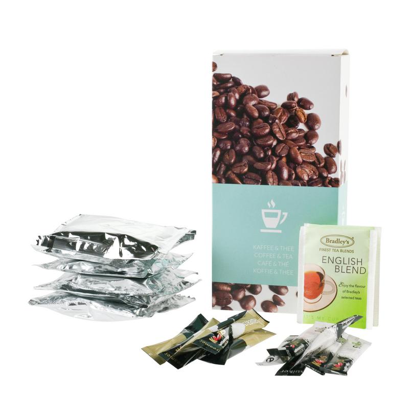 Coffee/Tea Package Senseo Contents: 6x Senseo pads 2x tea 1x coffee filter 6x sugar stick 6x creamer stickLees meer
