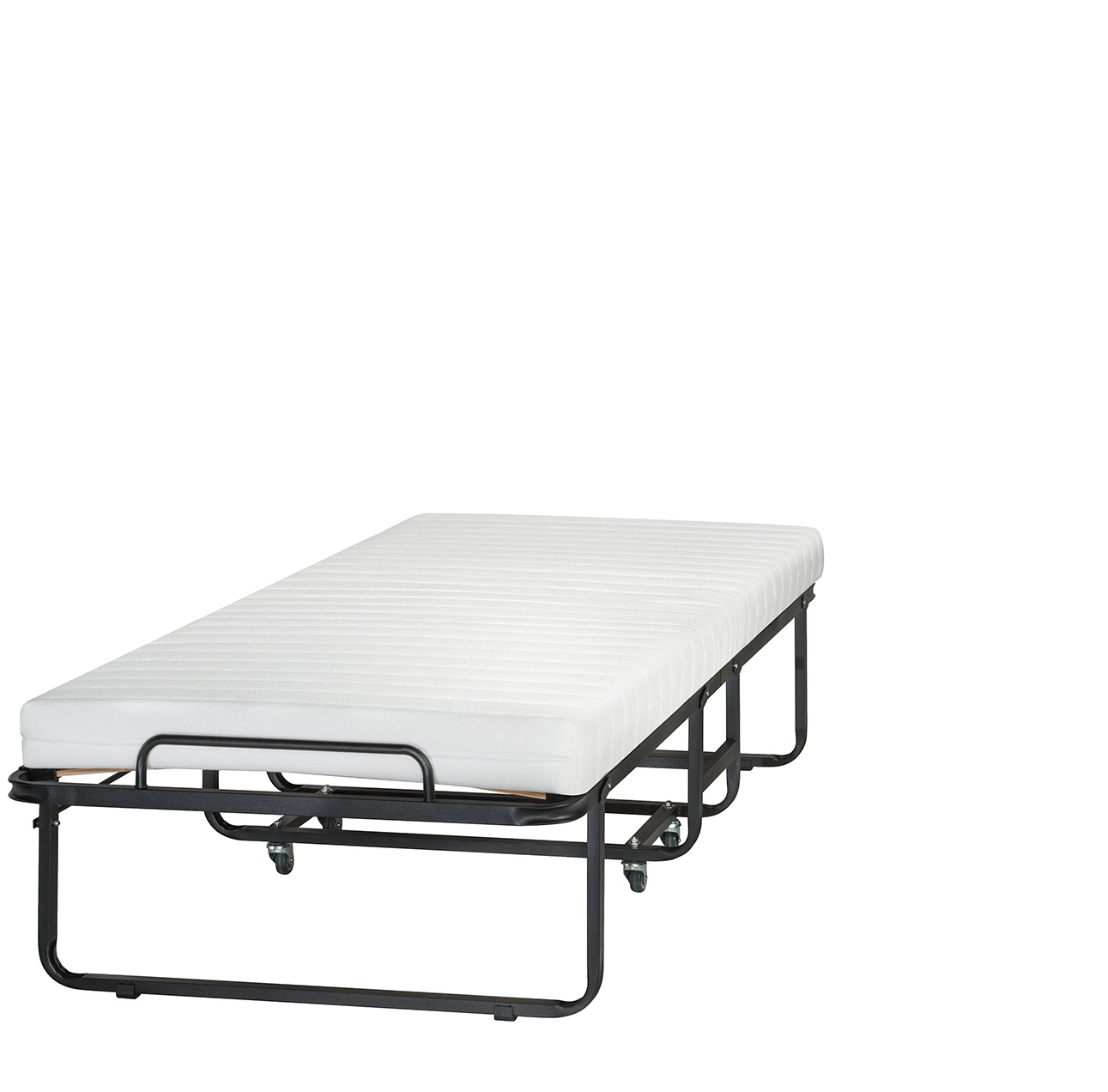 Foldable Bed Amsterdam 90x200 - This bed is only available in the size 90x200. Comes with a cold foam mattress (including a luxury removable mattress cover). Spring-loaded slatted base is quick and easy to move.