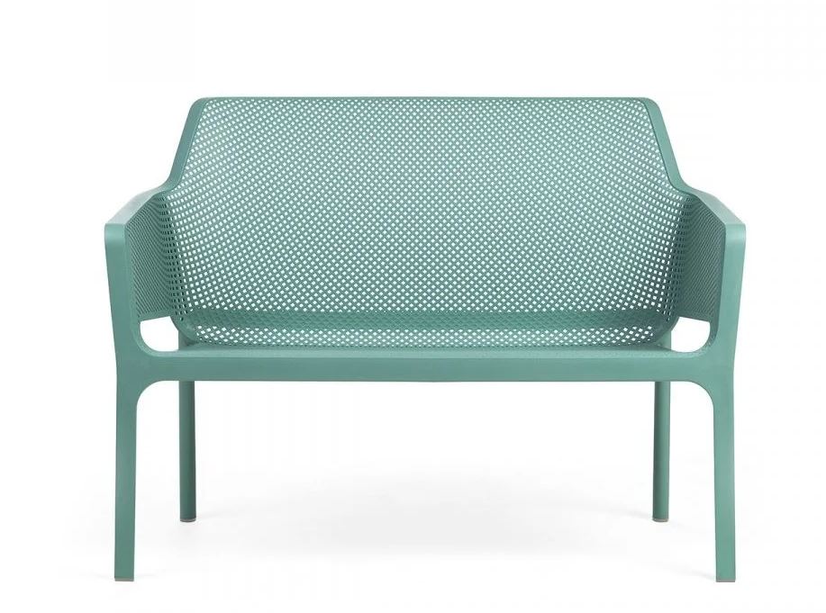 Nardi Net Bench Salice. Backrest Height: 86cm. Seat Height: 42cm. Width: 116cm. Depth: 70cm. The Nardi Net Bench is romantic and welcoming, Net Bench is a two-seater outdoor bench made of fiberglass. Decorated with a radial pattern of square perforations,Lees meer