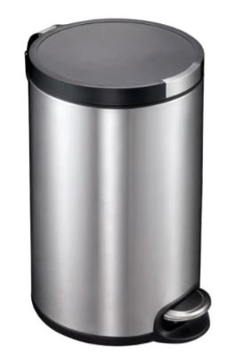 Artistic pedal bin 20L Mat RVS Round pedal bin with plastic lid with stainless steel accents. Equipped with plastic inner bin and damped closing lid.