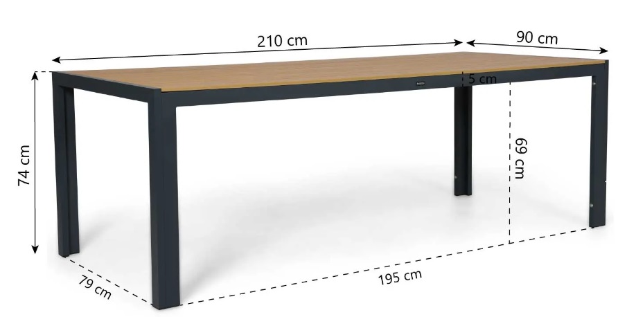 The Lifestyle Creta Dining garden table 205x90 cm is a stylish and practical outdoor table that combines comfort and functionality, ideal for professional use in short-stay accommodations, holiday homes, holiday parks, restaurant patios, and other outdoorLees meer